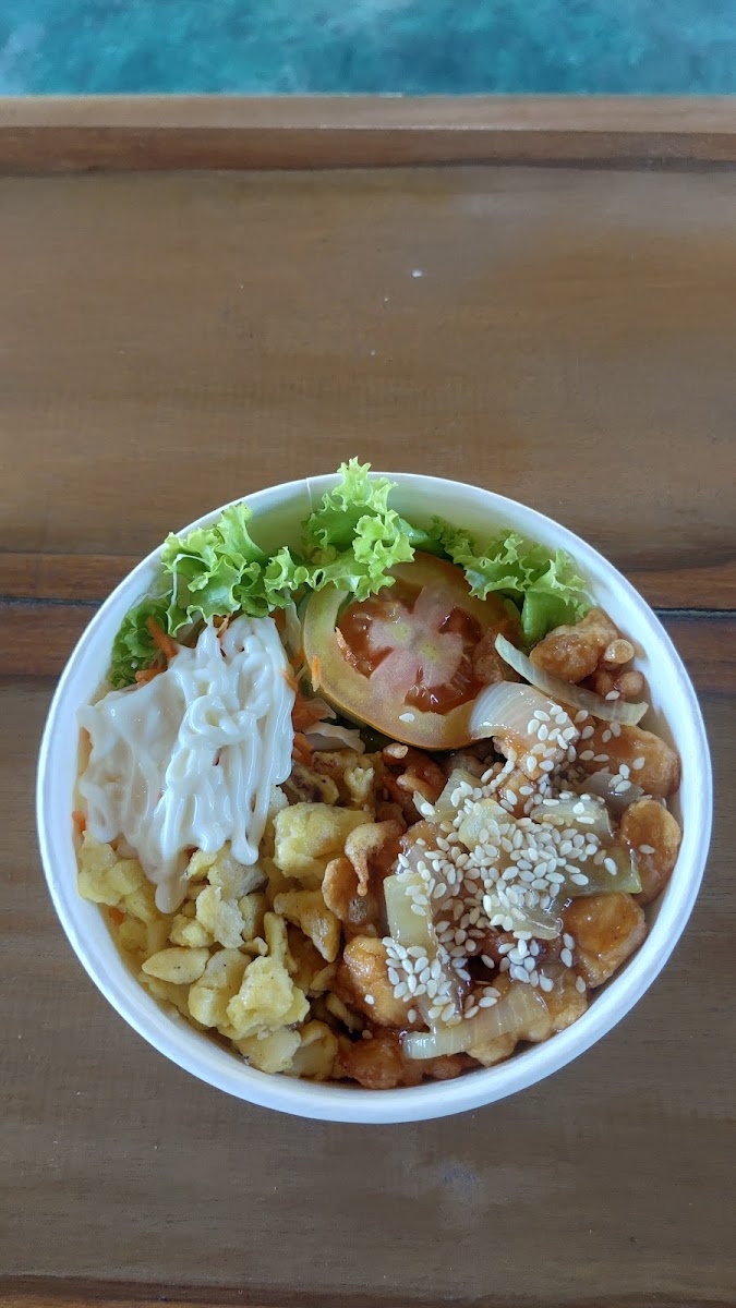 The star of the menu at Waroeng Rizky KDR lies in its special take-away offerings, each dish priced at a delightful IDR 13,000, making it not only a tasty choice but also a budget-friendly one. Indulge in the Nasi Ayam Saos Asam Manis, where succulent chicken is glazed in a tangy sweet and sour sauce, paired perfectly with rice and sautéed vegetables, bringing a delightful burst of flavor to your palate. If you're in the mood for something with a kick, try the Nasi Ayam Saos Lada Hitam featuring a spicy black pepper sauce that awakens the senses, or the Nasi Ayam Saos Teriyaki, a sweet and savory delight that will leave you craving more.